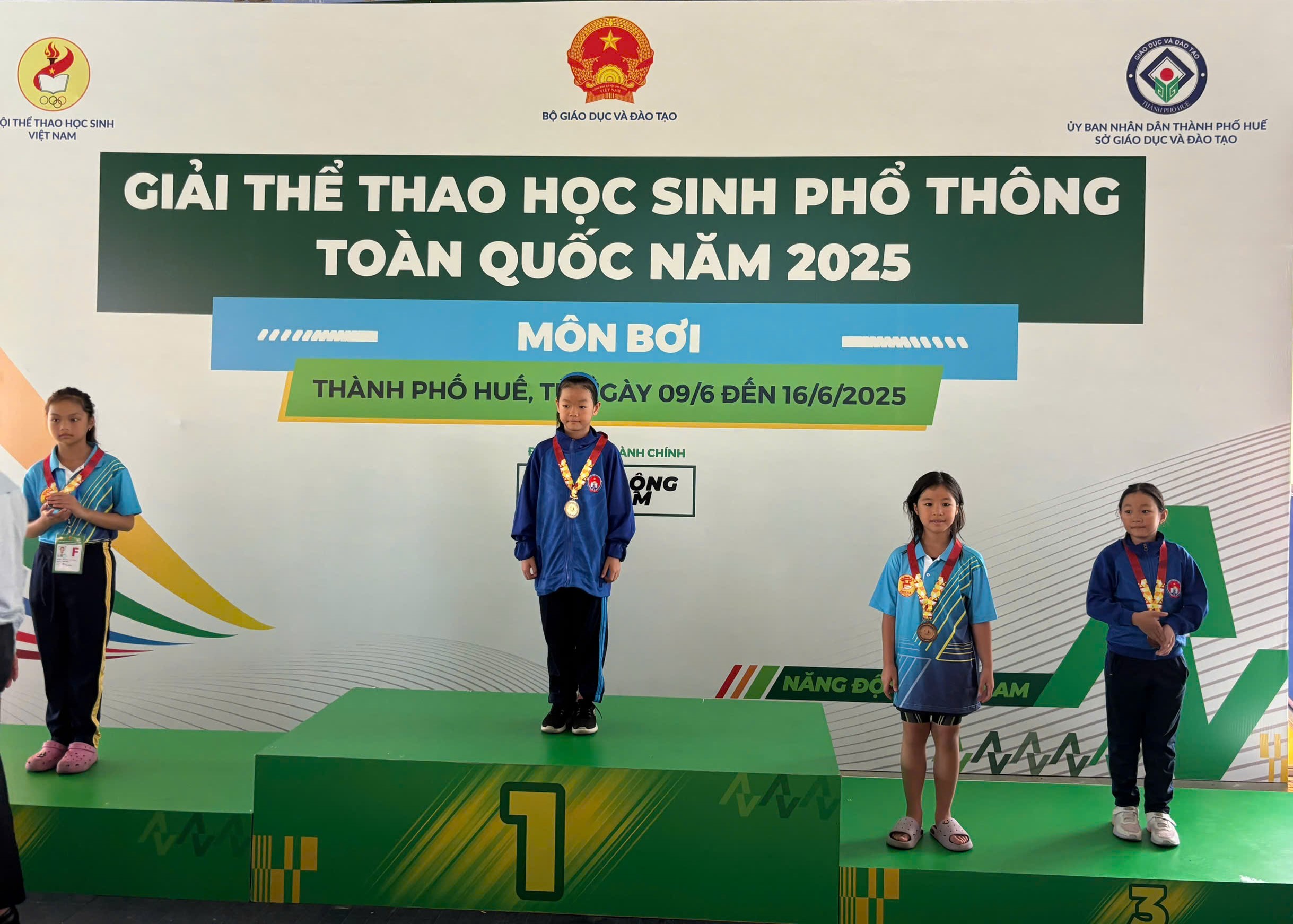 Ở tuổi lên 8, Arcer Bùi Minh Ngọc (lớp 3C1A, Trường Tiểu học Archimedes Academy) đã khiến thầy cô, gia đình và bạn bè vô cùng tự hào với thành tích đáng nể: Huy chương Đồng nội dung 50m tự do nữ (lứa tuổi 7–8) tại Giải Thể thao Học sinh phổ thông toàn quốc năm 2025. Trước đó, Minh Ngọc đã giành được nhiều giải thưởng cao tại vòng Quận và Thành Phố. Mới đây nhất, Ngọc tiếp tục ghi danh tại Giải bơi các CLB không chuyên toàn quốc năm 2025 với 1 Huy chương Vàng và 2 Huy chương Đồng.