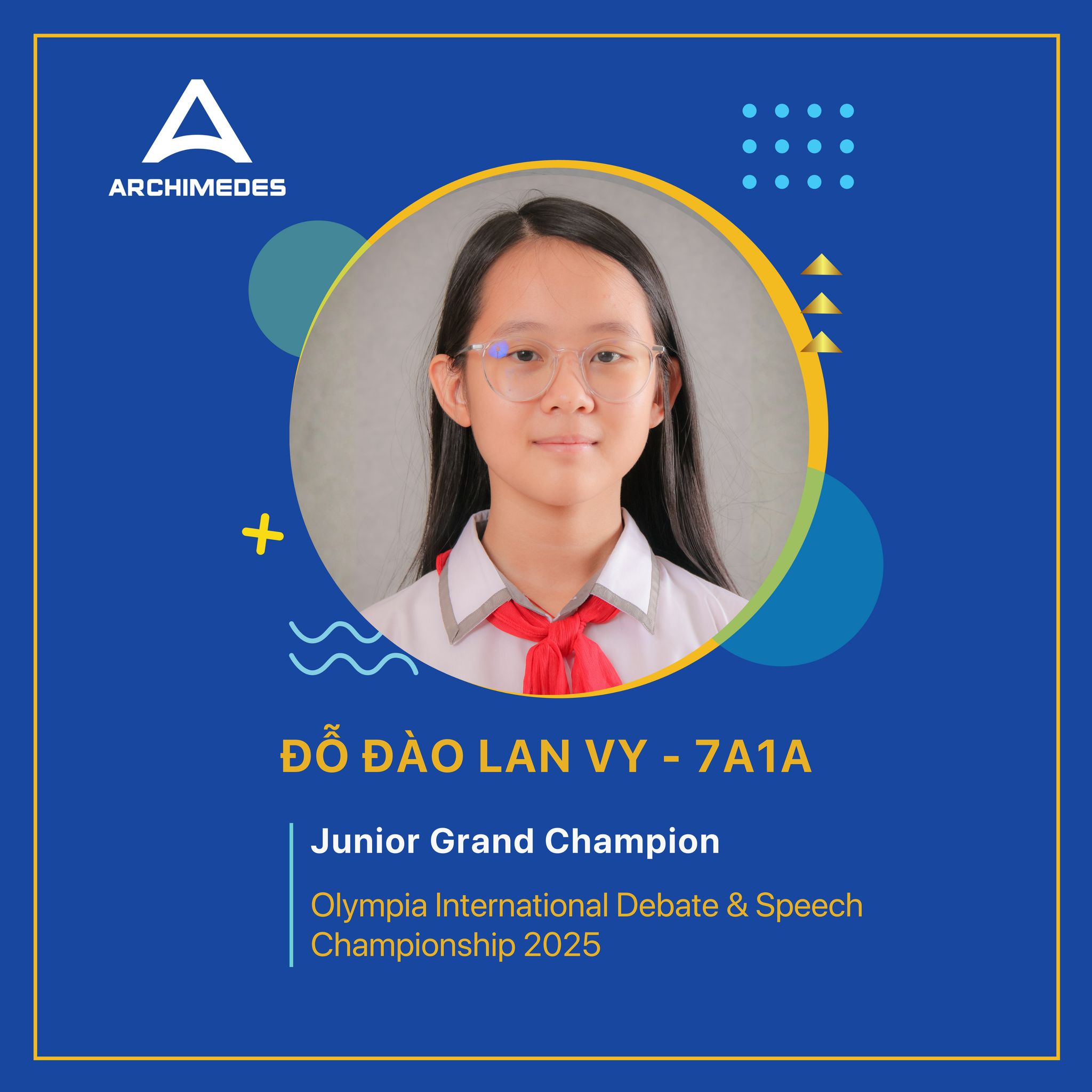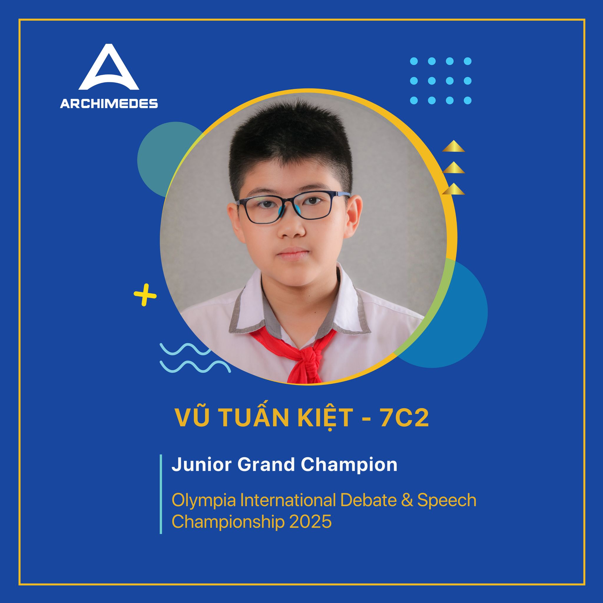 Chúc mừng hai Arcer Vũ Tuấn Kiệt (7C2) và Đỗ Đào Lan Vy (7A1) đã đạt thành tích ấn tượng tại Olympia International Debate & Speech Championship 2025. Cùng với đồng đội, các em đã xuất sắc giành danh hiệu Junior Grand Champion.