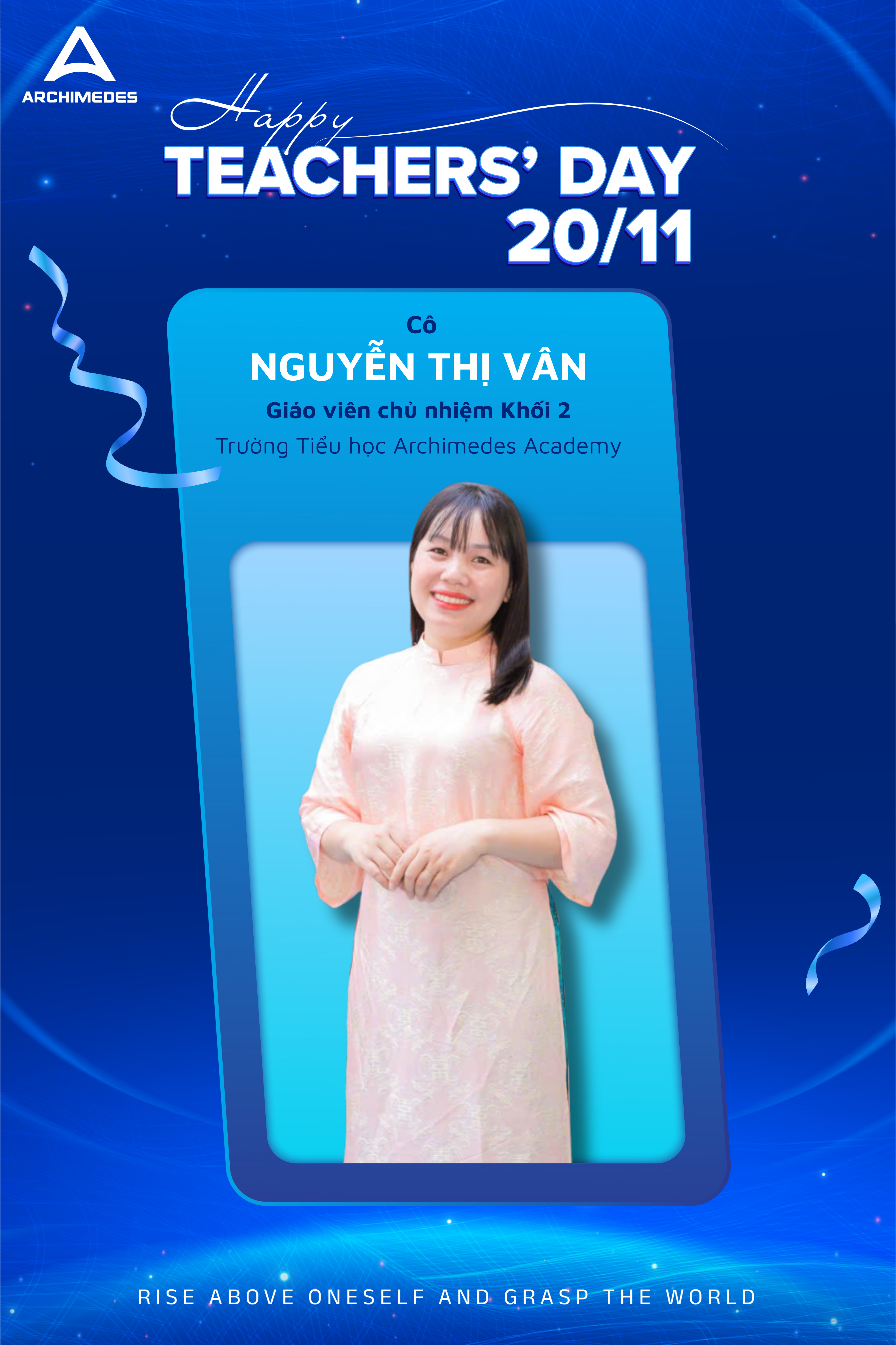Nhìn lại gần một thập kỷ gắn bó, cô Vân nói rằng Archimedes School là “ngôi nhà lớn của những người có chung nhịp đập”. Nơi các thầy cô không chỉ dạy, mà cùng nhau truyền cảm hứng; nơi học sinh không chỉ học, mà được yêu thương và thấu hiểu. “Tôi tự hào vì Archimedes School giữ được tinh thần: Tất cả vì học sinh thân yêu. Ở đây, mỗi ngày đến trường là một cơ hội để tôi tốt hơn, dịu dàng hơn và trọn vẹn hơn với nghề”.