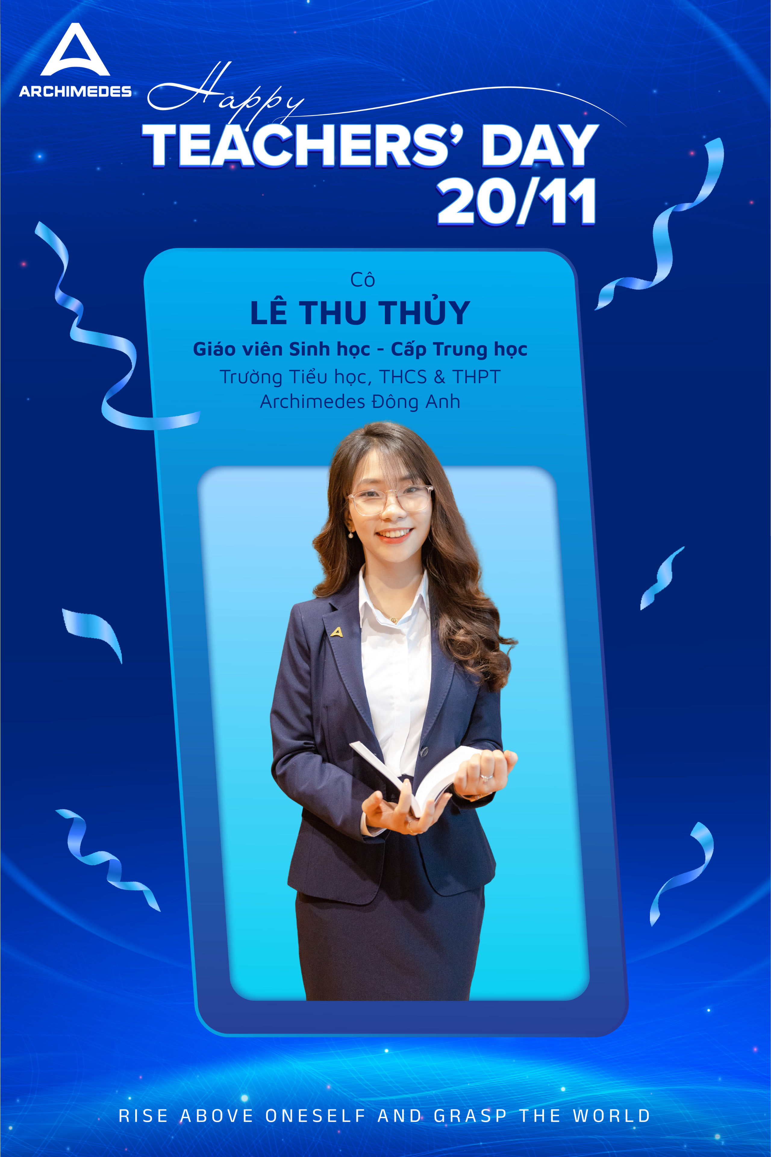 Suốt sáu năm dạy học và hơn năm năm gắn bó cùng Archimedes School, cô Thu Thủy luôn ghi nhớ lý do khiến mình lựa chọn nghề giáo. Từ khi còn rất nhỏ, mỗi lần ngồi trong lớp học ngập ánh sáng, “cô bé Thủy” ngày ấy luôn nhìn lên bục giảng với tất cả sự ngưỡng mộ. Trong mắt cô, thầy cô có thể giải đáp mọi câu hỏi “Tại sao?”, có thể mở ra những miền tri thức mới và nhẹ nhàng định hướng cả một tâm hồn đang lớn... Ước mơ trở thành một người như thế lớn dần theo năm tháng, như mầm cây bền bỉ tìm đường hướng sáng.
