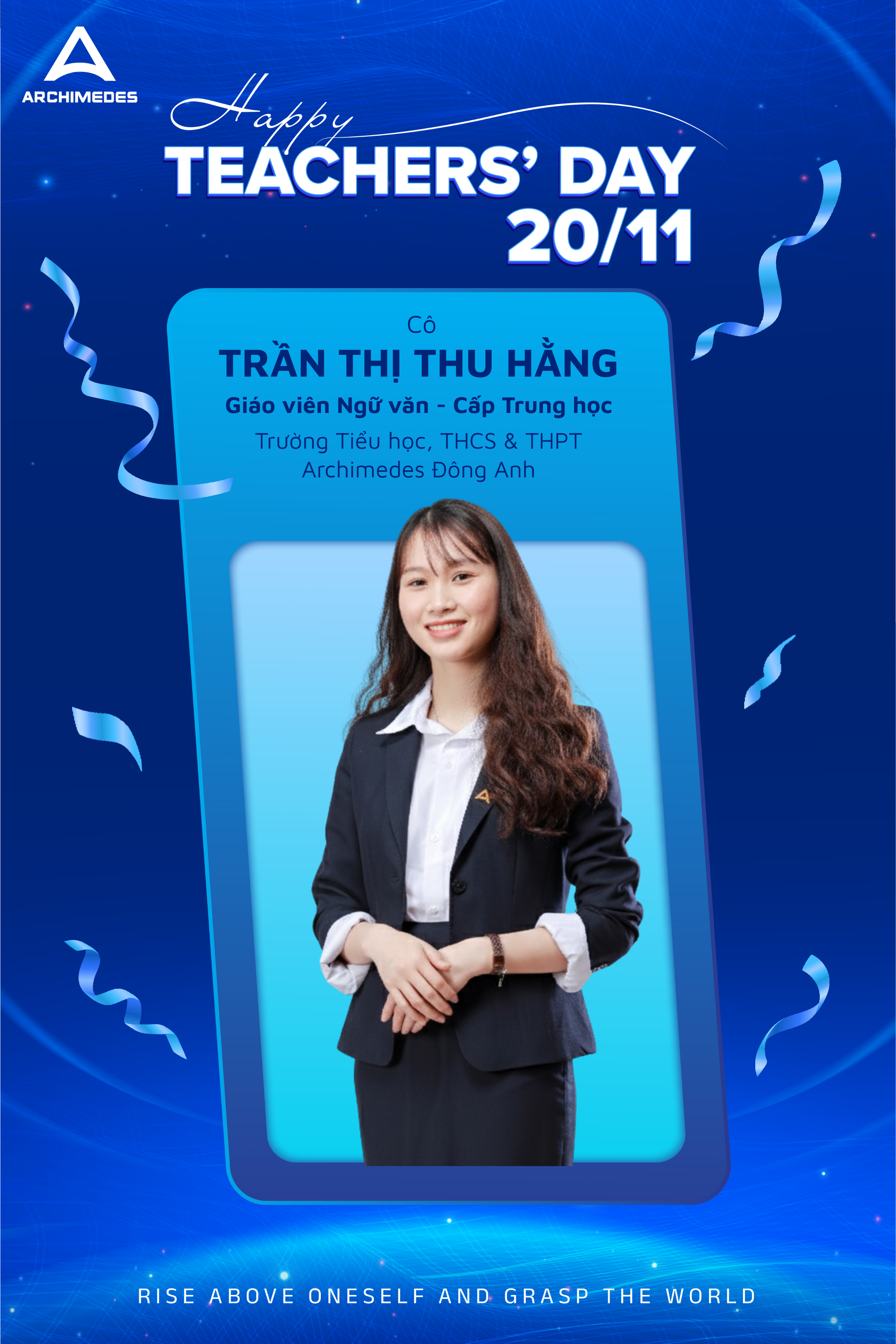 Xin được gửi lời tri ân sâu sắc tới cô Trần Thị Thu Hằng cùng mỗi thầy cô trong đại gia đình Archimedes School. Cảm ơn vì đã giữ cho ngọn lửa của tri thức và yêu thương luôn rực sáng nơi ngôi trường này!