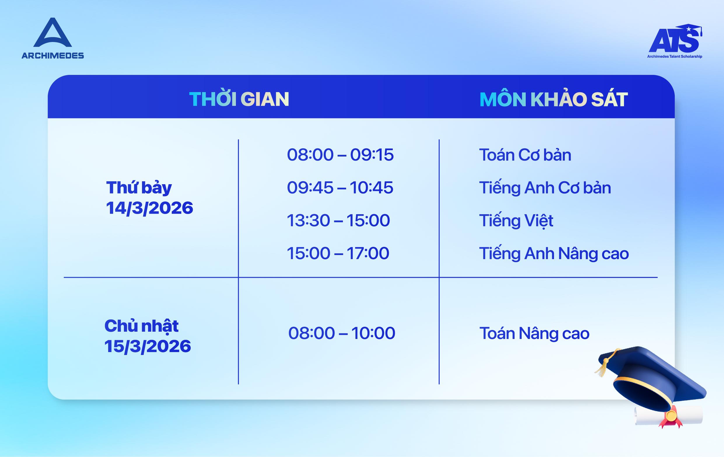- Học sinh đạt điểm số theo yêu cầu trong bài khảo sát ATS 2026 chính thức do Hệ thống Archimedes School tổ chức.